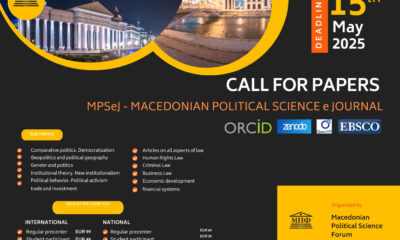 Македонски Политиколошки Форум, објави интернационален повик за доставување на академски трудови од областа на политологијата, правото и економијата. Трудовите кои ќе бидат одобрени ќе бидат објавени...