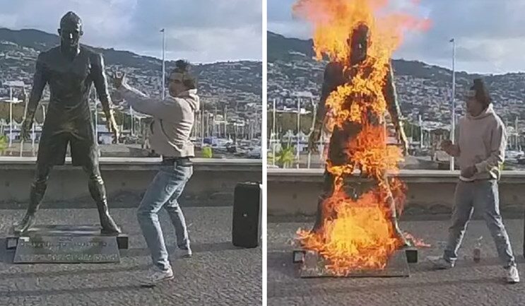 Полицијата на португалскиот остров Мадеира е во потрага по маж кој ја запали статуа на Кристијано Роналдо, го снимил неговиот чин и го објавил на интернет. Инцидентот се случил во Фуншал, главниот град на Мадеира и родното место на Роналдо.