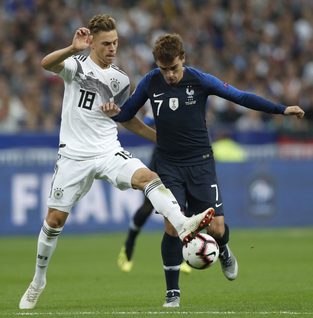 Антоан Гризман постигна два гола во второто полувреме за на светските шампиони Франција да им ја врати самодовербата по неубедливото реми со Исланд со 2:1 победа над лутите ривали од Германија, кои имаа водство во првото полувреме.