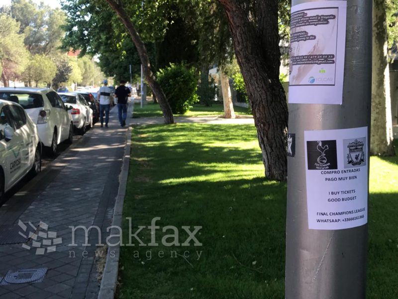 Преку ноќ во Мадрид осамнаа налепници по бандерите и објектите поставени од туристи што бараат билети за финалето на Лигата на шампионите. Натписите се истакнати во централниот дел на Мадрид, плоштадите и во близина на хотелите кај аеродромот. Според префиксот на телефонскиот број (+33), навивачот доаѓа од Франција.