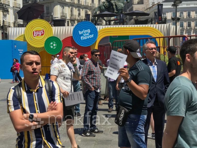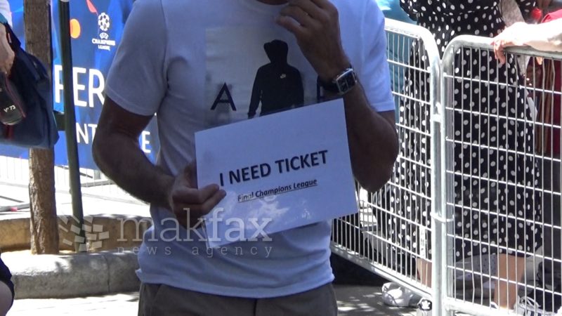 „Потребен ми е билет за финалето од Лигата на шампионите“, пишува на листовите од оние кои немаат билет.