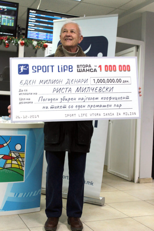 Добитникот на 1 000 000 денари и победник на „Втора шанса за милион“ на „Спорт лајф“ е Риста Милчевски од Крива Паланка. Тој го освои првото место со највисок „фатен“ коефициент на тикетите со еден промашен пар.