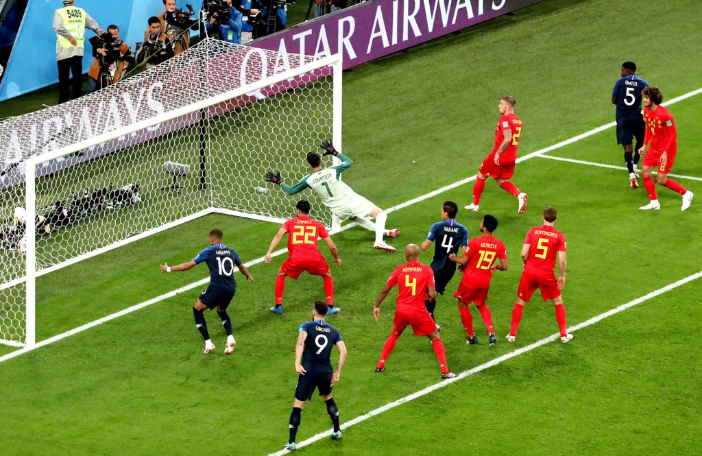 Французите враќаат во 11. минута, кога Дембеле го наоѓа Мбапе во шестнаесетникот, но Белгијците се сигурни во одбраната. Франција и во 13. минута имаше добра шанса преку Погба, кој упатува пребрза топка за Мбапе.