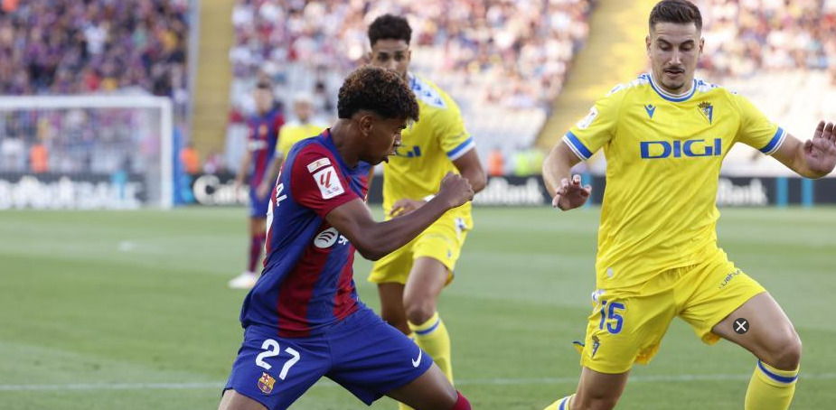 Актуелниот шпански првак, на „Монжуик“, каде сезонава ќе биде домаќин. отпорот на Кадиз го скрши со головите во 82. и 94.минута.