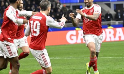 Фудбалерите на Арсенал го победија Интер, со 3:1 во дербито на вечерта, во претпоследното коло од групната фаза на Лигата на шампионите.