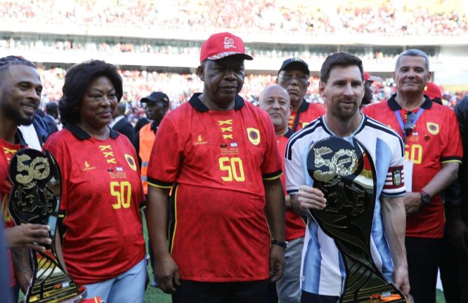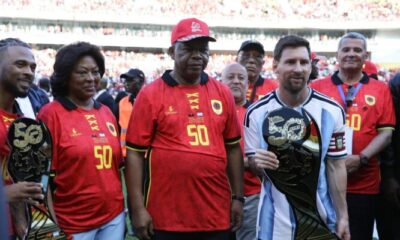 Пред натпреварот, славниот Аргентинец доби посебен подарок од претседателот на Ангола по повод педесетгодишнината од независноста на оваа африканска земја од Португалија, а централниот дел од прославата беше токму натпреварот против светските шампиони.
