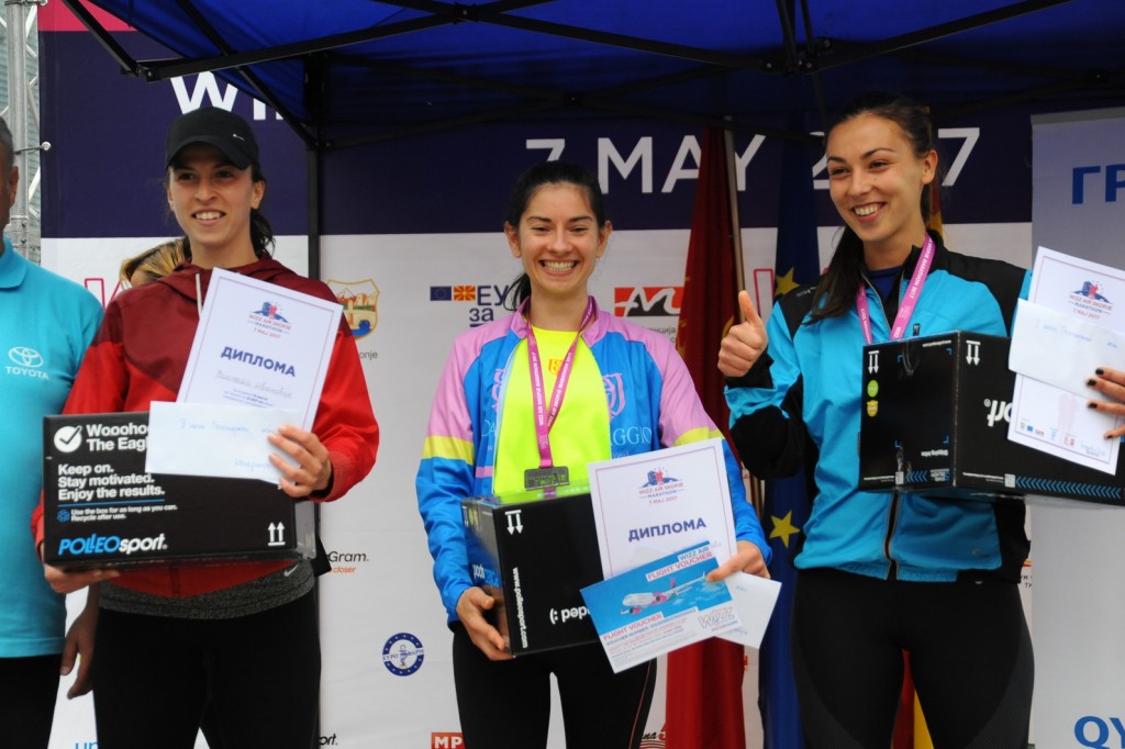 Од домашните натпреварувачки, 21 километар најбрзо истрча Весна Кираџиева, втора беше Билјана Кираџиева, а трета Катерина Шиповиќ. „Прекрасно се чувствувам и препорачувам сите кои имаат желба да се посветат на овој прекрасен спорт и да се испробаат и овде на маратонот“, рече Весна Кираџиева.