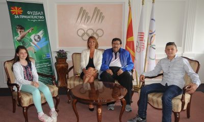 Македонските учесници во проектот „Фудбал за пријателство“, младите амбасадори Стефан Талевски, млад фудбалер од подмладокот на ФК „Пелистер“ од Битола и Симона Костадинова, ученик од Скопје...