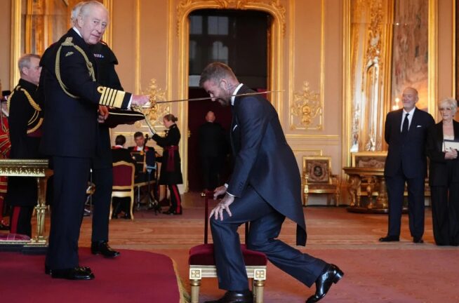50-годишниот Бекам, кој претходно оваа година, беше на списокот на почести за роденденот на кралот Чарлс, ја прими почеста лично од монархот за време на церемонија одржана во Беркшир.