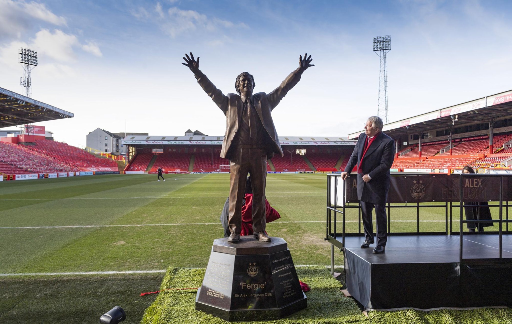 ? Sir Alex Ferguson unveils his statue to Pittodrie. #StandFree | #SAFHomecoming pic.twitter.com/j6mR1egQhi