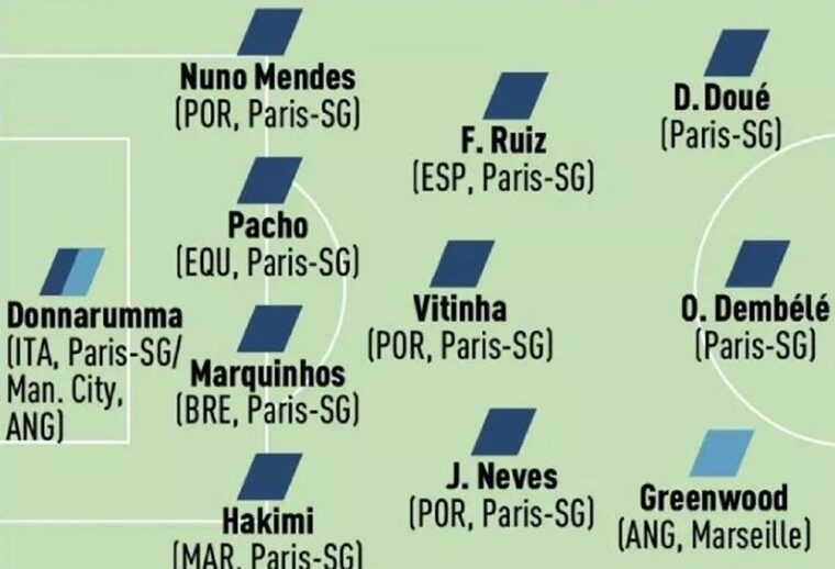 Како резултат на тоа, тврдат тие, треба да се земе предвид дека ПСЖ го дочекува крајот на оваа година и половина од тековната сезона на второто место зад Ленс. Затоа, сметаат тие, идеалниот тим од Лига 1 за 2025 година треба да вклучува и играчи од други клубови.