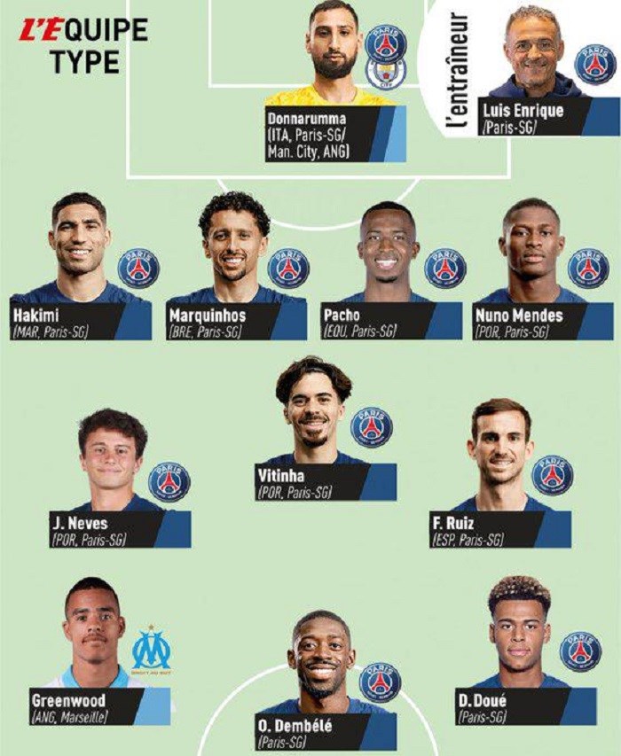 Парискиот „Лекип“, најпочитуваниот спортски медиум во светот, го објави својот идеален тим од француската Лига 1 за 2025 година. 10 од 11 фудбалери во идеалниот тим го носат дресот на ПСЖ.
