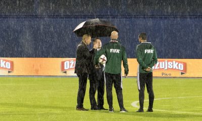 Квалификацискиот натпревар за пласман на Светското првенство во Русија помеѓу репрезентациите на Хрватска и Косово е прекинат поради врнежите од дожд и лошиот терен на стадионот...