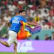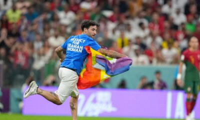 Натпреварот од 2. коло на Светското првенство во Катар помеѓу Португалија и Уругвај (2:0) беше накратко прекинат во 51. минута од навивач кој влезе на теренот...