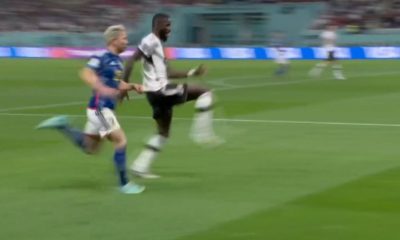 Дефанзивецот на Германија, Антонио Ридигер, сакаше да се „направи“ Јусеин Болт во 64.минута, откако го затвори јапонскиот напаѓач Такума Асано при еден спринт крај десната аут...