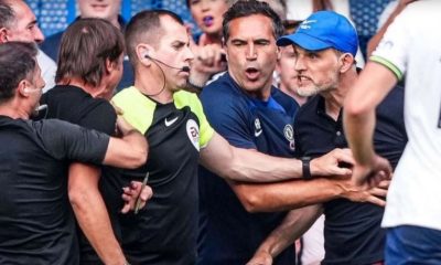 Менаџерите на Челси и на Тотенхем, Томас Тухел и Антонио Конте, за малку ќе имаа физичка пресметка по завршувањето на лондонското дерби (2:2). Прво се поздравија,...