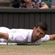 Походот на Новак Ѓоковиќ кон нова титула од Вимблдон продолжува, откако Србинот успеа да се врати од два сета негатива и навидум сигурен пораз за 5:7/2:6/6:3/6:2/6:2...