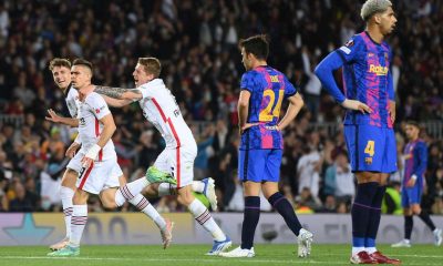 Најголемиот фаворит за освојување на трофејот во Лигата на Европа, тимот на Барселона, е елиминиран во четврт-финалето, откако загуби со 2:3 од Ајнтрахт Франкфурт на „Камп...