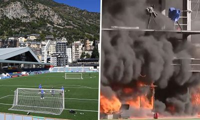 Дел од стадионот „Естади Насионал“ во Андора, каде што утре треба да се одигра квалификацискиот меч за СП помеѓу домаќините и Англија, е во оган, јавуваат...