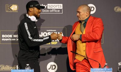 Украинскиот предизвикувач за титулата во тешка категорија, Олександер Усик, на последното соочување со Ентони Џошуа пред нивната пресметка се облече како Џокер од филмот со Хоакин...