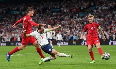Интересен и израмнет меч играат Англија и Данска во првите 45 минути на „Вембли“. Полуфиналниот дуел донесе отворен фудбал, љубителите на најважната споредна работа на светот...
