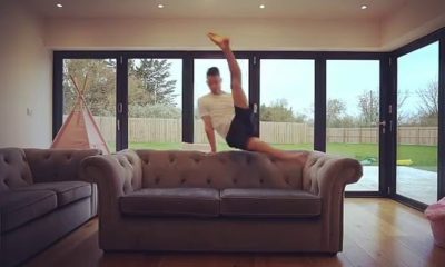 Британскиот двократен олимписки шампион во гимнастика, Макс Витлок најде начин да остане во форма пред Олимпијадата (ако ја има), користејќи го домашниот кауч како тренинг за...