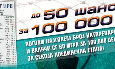 Во „Спорт лајф“ стартува нова акција за редовните играчи, членови на СЛ клубот. Под називот „до 50 шанси за 100 000 денари“ тие ќе се натпреваруваат во 8 неделни...