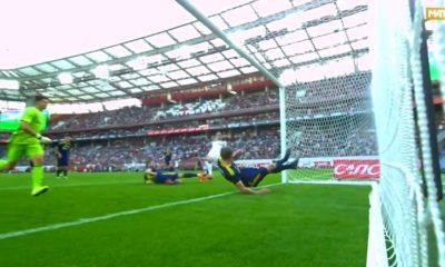 Фудбалерот на рускиот тим Ростов, Евгениј Чернов на спектакуларен начин ја спаси мрежата на својот тим на вчерашниот натпревар од првата руска лига против Локомотив Москва....