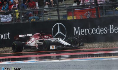 Возачите на Алфа Ромео,,Кими Раиконен и Антонио Џовинаци останаа без бодовите што ги освоија на трката за големата награда на Хокенхајм. Раиконен и Џовинаци низ целта...