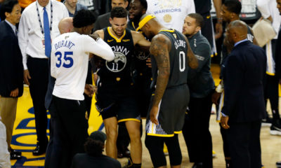 Бекот на Голден стејт Вориорс Клеј Томпсон ги скинал предните вкрстени лигаменти во левото колено, во текот на шестиот меч од финалната серија против Торонто Репторс,...