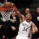 Грчкиот кошаркарски центар, 211 сантиметри високиот Јанис Адетокумбо синоќа му донесе нова победа за својот Милвоки Бакс, но сепак тој стана тема на потсмев кај противниците...