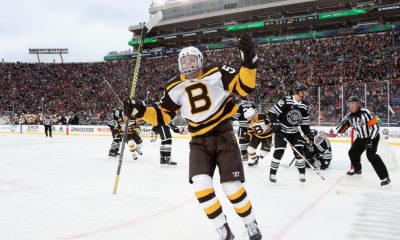 Три натпревари се одигра во професионалната хокеарска лига, НХЛ, а најмногу внимание привлече дуелот што под „отворено небо“, во Нотр Дам, во Индијана, пред 76.126 гледачи...