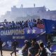 Француските фудбалери до раните утрински часови, во претседателската палата ја славеле светската титула, освоена во неделното финале во Москва. Претходно, светските шампиони, од аеродромот „Шарл Де...