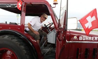 Тројца Швајцарци со тркатор пристигнале во Калининград, каде вечерва нивната репрезентација ќе игра против Србија во второто коло, на Светското првенство во Русија. Беат Штудер, Вернер...