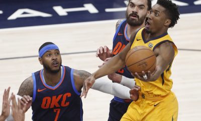 Дебитантот Донован Мичел постигна 38 поени за да помогне Јута џез да ја добие серијата од првото коло од плеј-офот против Оклахома сити тандер по 96:91...