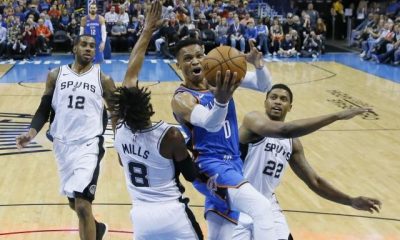 Оклахома Тандер го победи Сан Антонио Спарс 104:94 во дербито на вечерта во НБА лигатата. Расел Вестбрук со трипл дабл ја предводеше Оклахома до победата, додека...