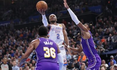 Оклахома Сити ги запре Лејкерс со добра одбрана и го лимитираше тимот што е лидер во лигата по процент на шут од поле (51,2 проценти) на само 40,3 проценти реализација во овој натпревар.