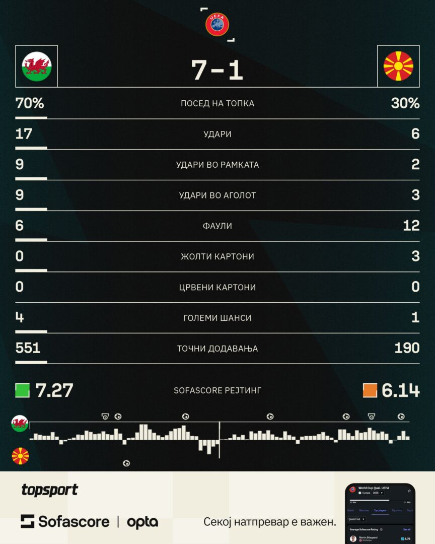 Се до вечерва две години Македонија немаше пораз во официјален натпревар (Лига на нации и квалификации се СП). Крај на успешната низа дојде на „Милениум“ стадионот во Кардиф.