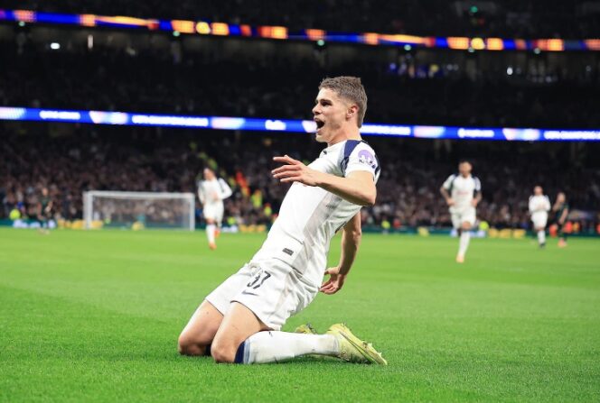 Мики ван де Вен постигна гол во победата на Тотенхем од 4-0 над Копенхаген во Лигата на шампионите, додека неговиот тим беше под притисок. Холандскиот дефанзивец ја собра топката на работ од својот шеснаесетник и наместо да ја шутне што подалегу од својот гол, тој реши да тргне напред.
