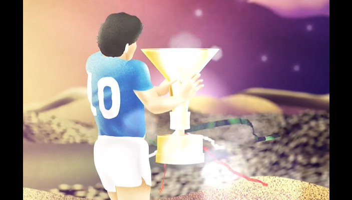 Во анимираното видео, Марадона го гледа Неапол од вулканот Везув, уште во неговиот легендарен дрес со „десетката“, по што го пушта трофејот, кој лебди над улиците, за да се најде во рацете на сегашниот тим на Наполи на стадионот кој го носи неговото име.