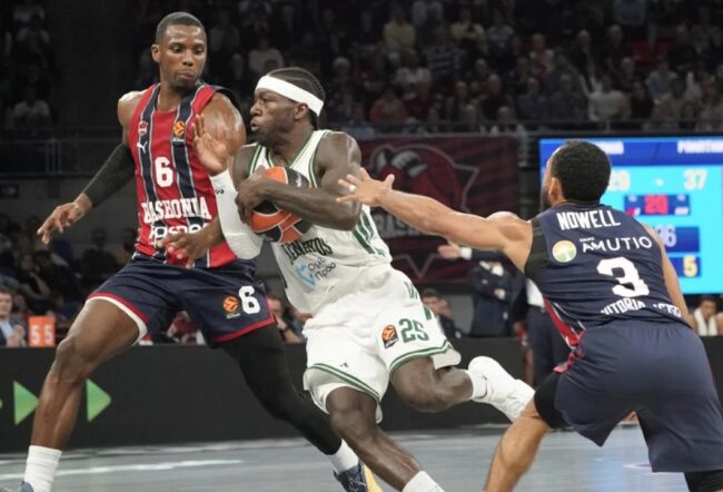Кошаркарите на Панатинаикос, на гостински терен, ја победија Басконија со 86:84, во третото коло, во Евролигата. Натпреварот со звукот на сирената го реши Кендрик Нан.