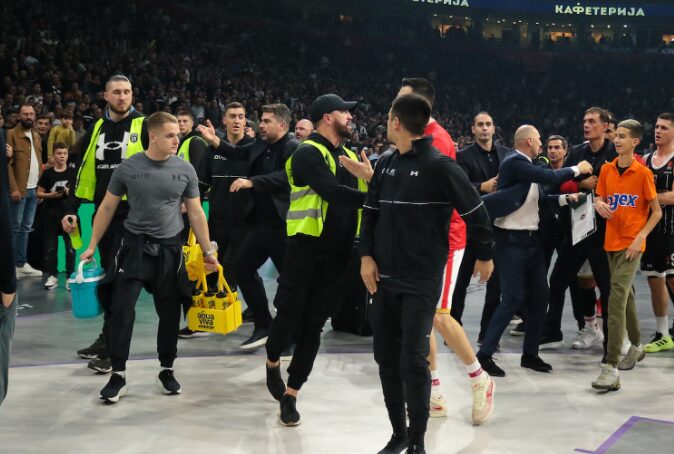 Инцидент го обележа крајот од натпреварот меѓу Партизан и Олимпијакос во Евролигата. Партизан победи со 78:70, а инцидентот се случи по завршувањето на натпреварот.