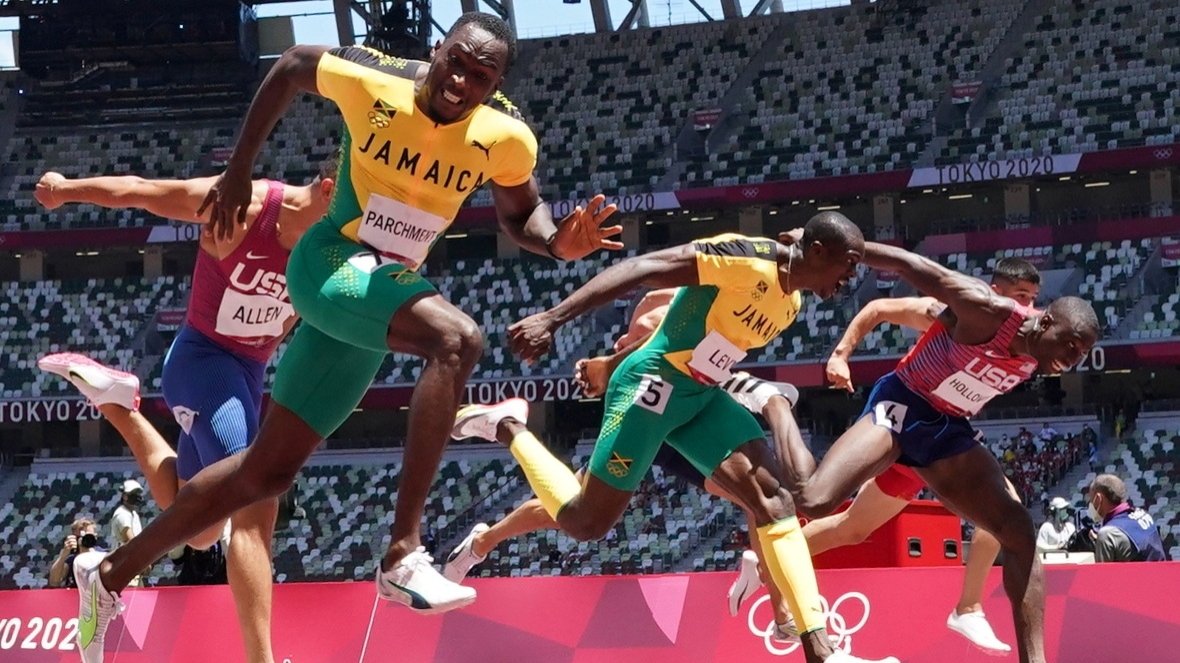 Јамајчанецот Хенсл Парчмант освои злато на трката на 110 метри со пречки и го изненади фаворитот Грент Холовеј. Но, малку недостигало тој воопшто да не успее да стигне пред почетокот на трката.