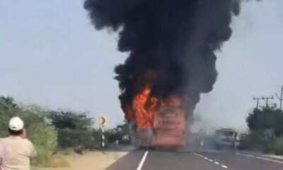 Hyderabad to Bangalore bound bus catches fire in Kurnool