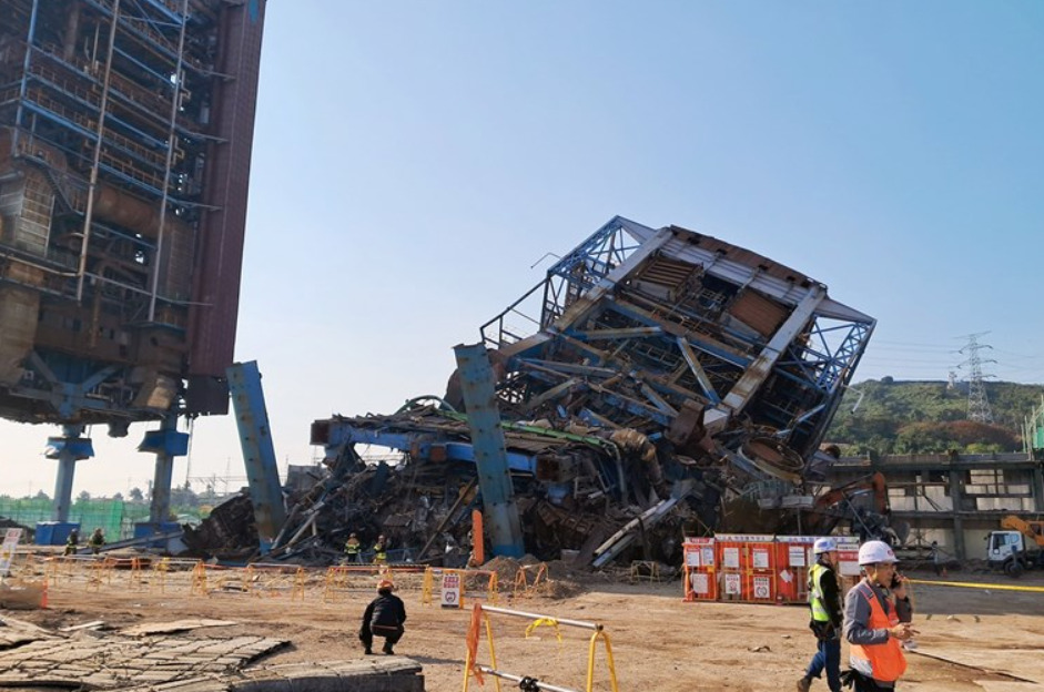 Јужнокорејските медиуми објавија фотографија на која се гледа масивна челична структура во југоисточниот град Улсан која се урнала и се превртела.