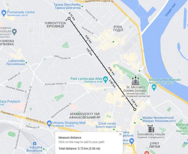 Улицата во која паднал проектилот се наоѓа на околу 6 километри воздушна линија од главниот плоштад во Киев.
