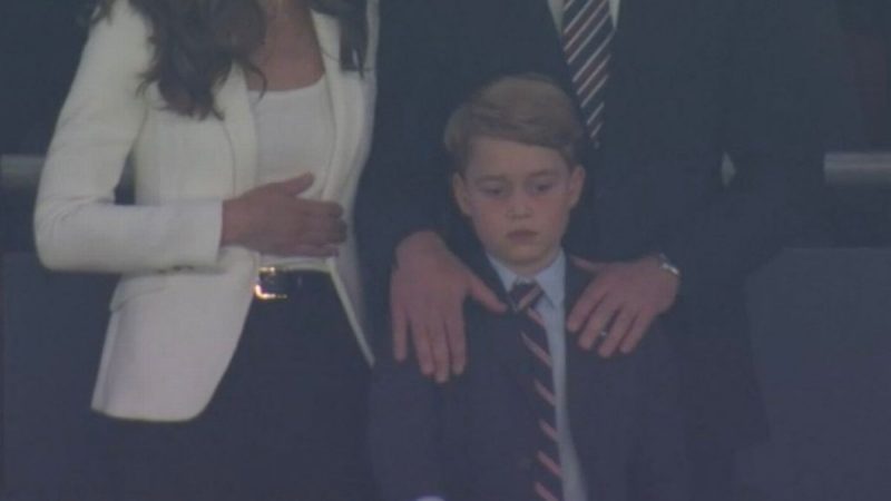 Седумгодишниот Џорџ беше со неговите родители, Кејт Мидлтон и принцот Вилијам, во ВИП-ложата, каде што среќно навиваше за Англија, која на почетокот поведе со 1:0, но на крајот загуби на пенали, кои Кејт, како што пишува „Дејли мејл“, не можеше да ги гледа. Па во еден момент го закопа лицето во дланките.