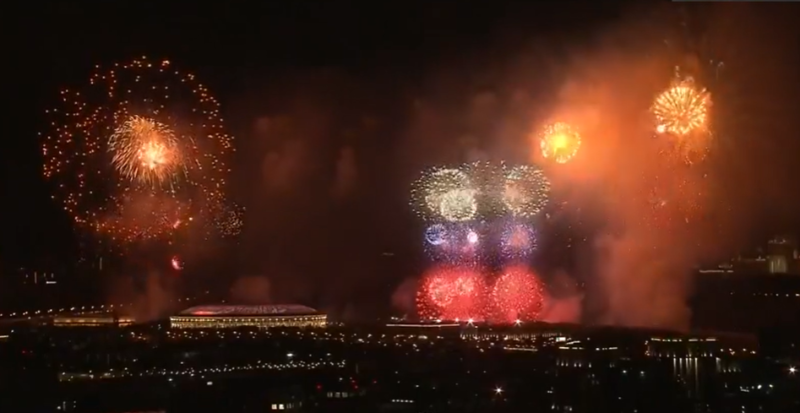 Пред крајот на огнометот небото беше украсено со боите на руското знаме.