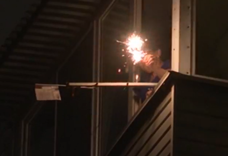 Луѓето беа излезени на терасите од своите домови за да го проследат огнометот кој траеше десетина минути, а една од зградите беше осветлена во форма на бројот 75, означувајќи ја годишнината од победата во Втората светска војна.