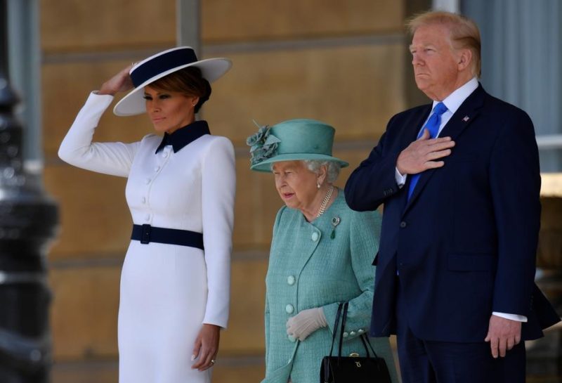 Давањето подароци беше дел од традиционалниот момент помеѓу шефовите на државите за време на посетата. Првата дама на САД, Меланија Трамп, забележала дека кралицата Елизабета (93) секогаш носи брош како омилен моден додаток, па одлучила да ја изненади со таков подарок.
